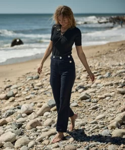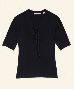 In a stretchy, lightweight linen blend with allover ribbing, the Auguste Top features a fitted silhouette and elbow-length sleeves detailed with delicate pointelle. The plunging V-neckline laced with a tie allows you to cinch as much as you’d like.