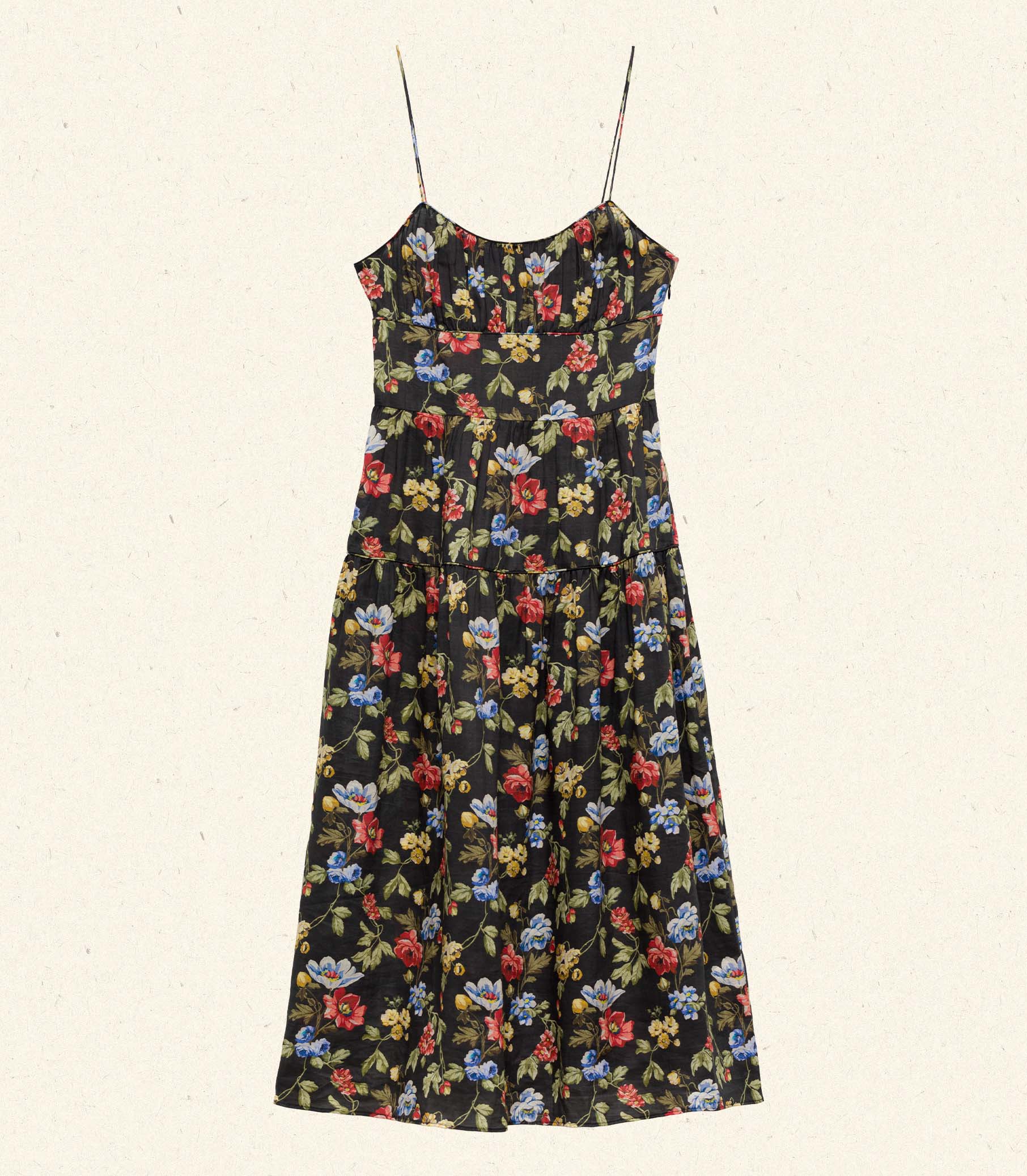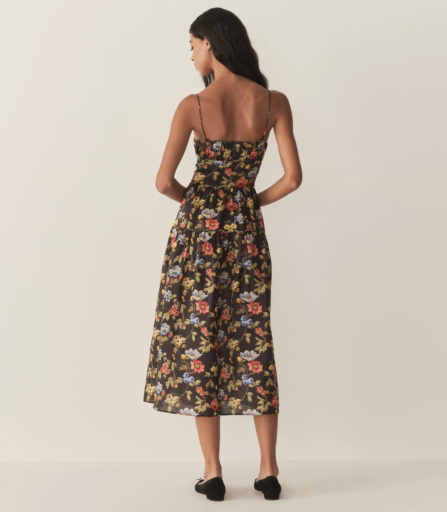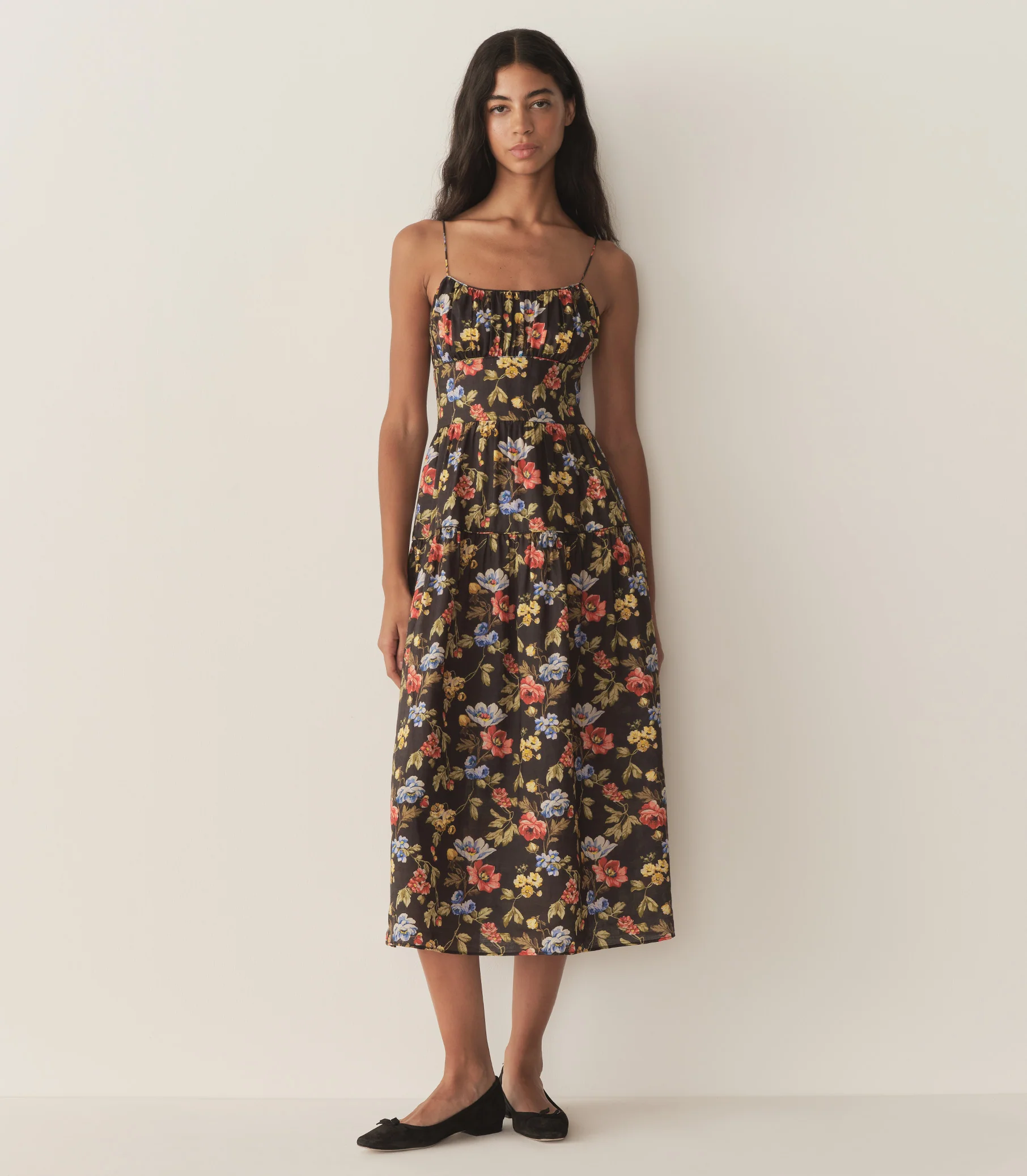 Reimagined in a lightweight ramie graced with a 1930s French block print, our beloved Benoit Dress returns for Spring, featuring a soft sweetheart neckline and ultra-skinny spaghetti straps. A fitted bodice with an invisible side zipper gives way to an ankle-grazing A-line skirt.