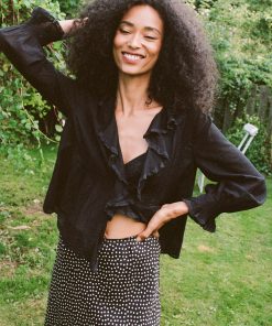 Crafted from a buttery silk-viscose twill and rendered in our nostalgic Camille Dot, the Elowena Skirt is a slightly shorter version of our beloved ‘90s-inspired Elowen Skirt. It features a high waist trimmed with elastic scallop detailing and a flowy bias-cut skirt that falls to mid-calf.