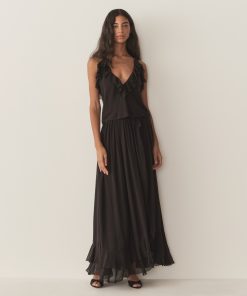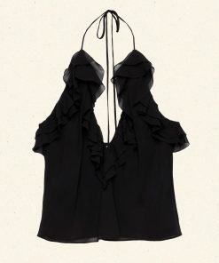 Taking cues from the disco halter tops of the 1970s, the Emmelie Top is crafted from a floaty silk georgette lined with soft viscose, featuring a plunging V-neckline framed with cascading ruffles and a self-tie halter strap. Pair with the Elisa Skirt for a matching set.