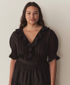 Crafted from the softest organic cotton voile, the Edwardian-inspired Henri Top – which made its debut in Spring 2018 – is a Favorite Character we find ourselves returning to again and again. It features a plunging V-neckline framed with cascading lace-trimmed ruffles that extend down the bodice and delicate clustered pintucks at the yoke, back, and short puffed sleeves. A line of hidden starburst buttons run up the center front. Wear it loose, or tuck it into your favorite high-waisted jeans.