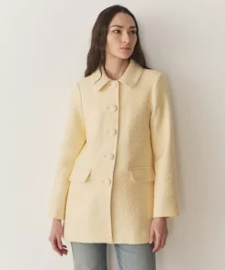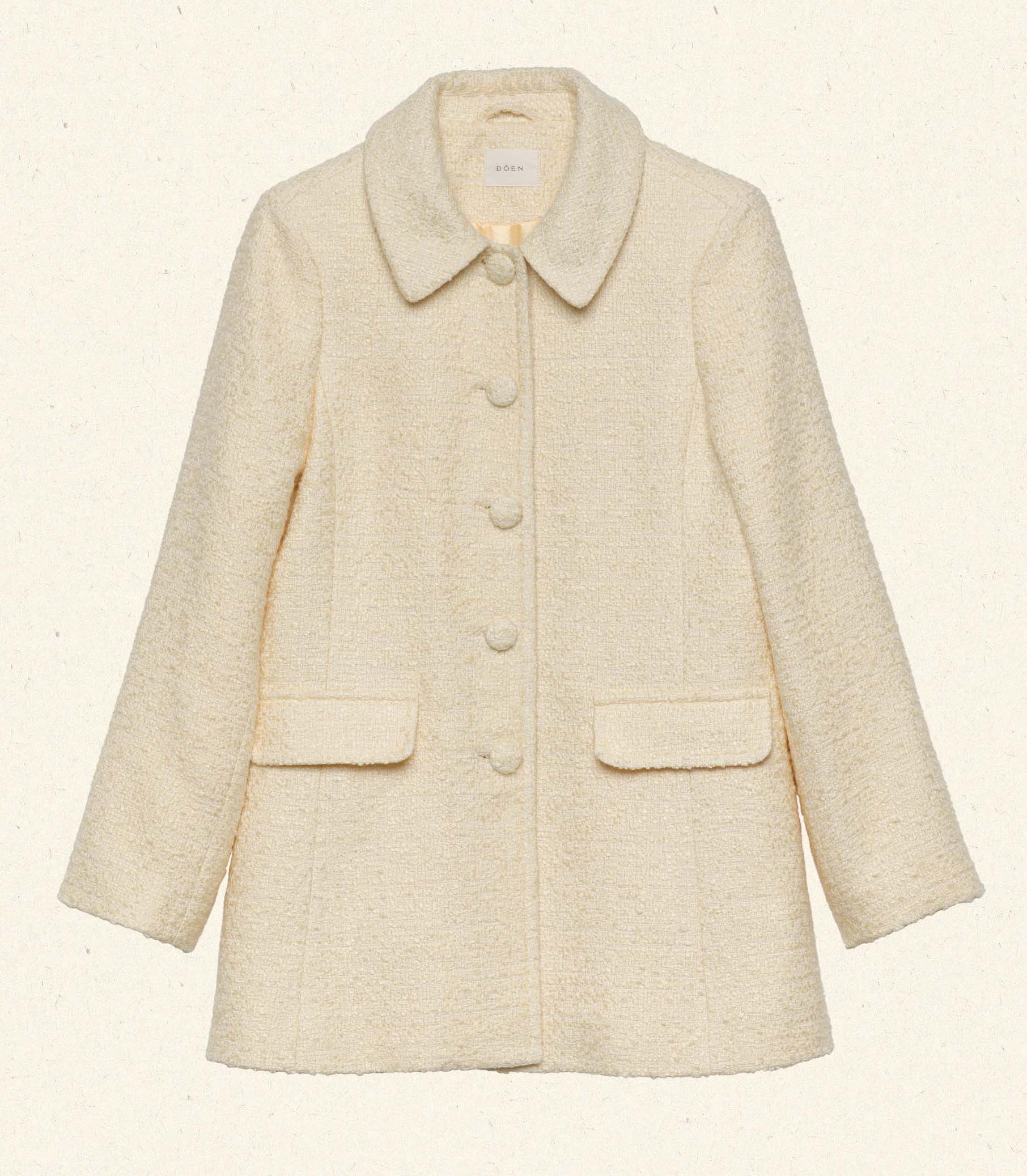 Taking cues from the mod coats of the ‘60s, the DÔEN Heirloom Maribeth Coat—crafted from a textural bouclé tweed and lined with viscose twill—features a subtle A-line cut, self-covered buttons, princess seams for structure, and two patch pockets. With its tailored slim fit, it layers nicely over dresses.
