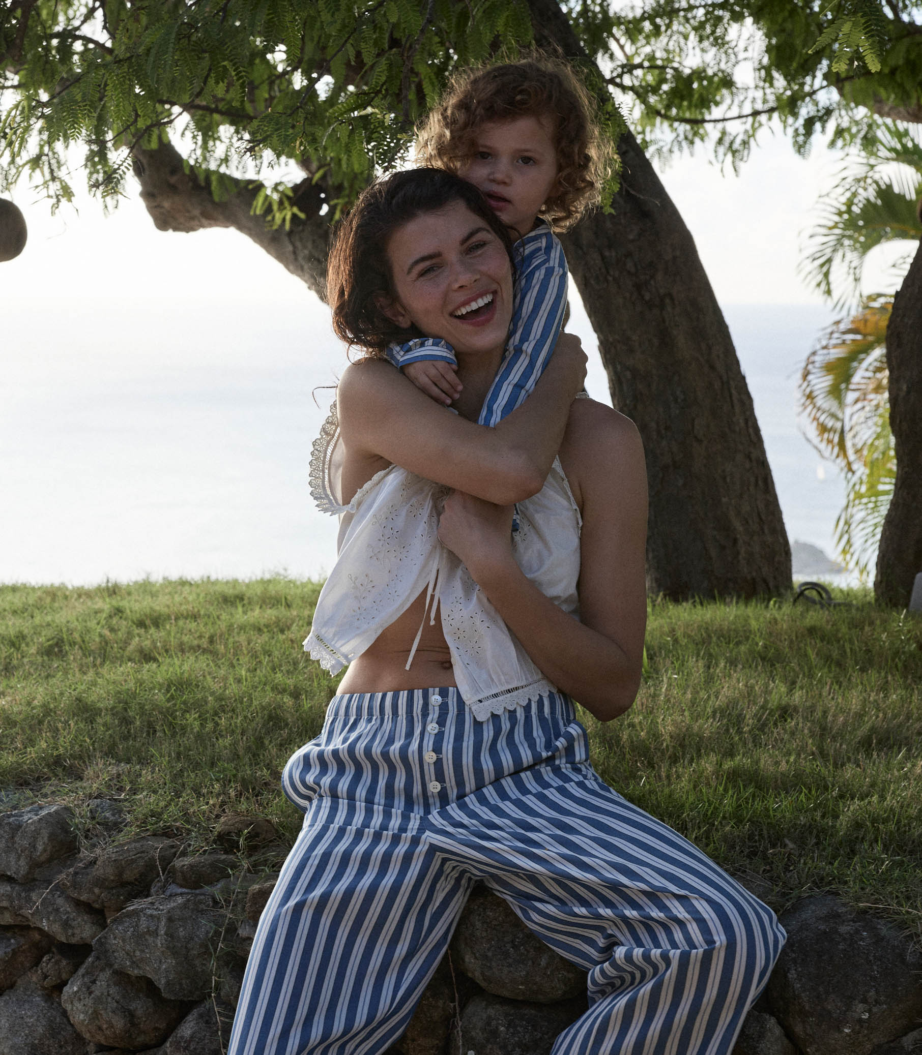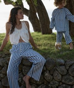 Tailored in crisp cotton and rendered in our yarn-dyed Lucerne Stripe, the Morgan Pant takes cues from vintage sleepwear, featuring a button fly, hidden drawstring, an elastic waistband, and an antique-inspired embroidered “D” at the pocket.