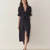 A sleeveless rendition of our beloved Quinn, the Quilla Dress is crafted from crisp cotton poplin. It features a scoop neckline with an adjustable tie and keyhole detail, a gathered bust, and a smocked bodice that falls into a midi-length A-line skirt.