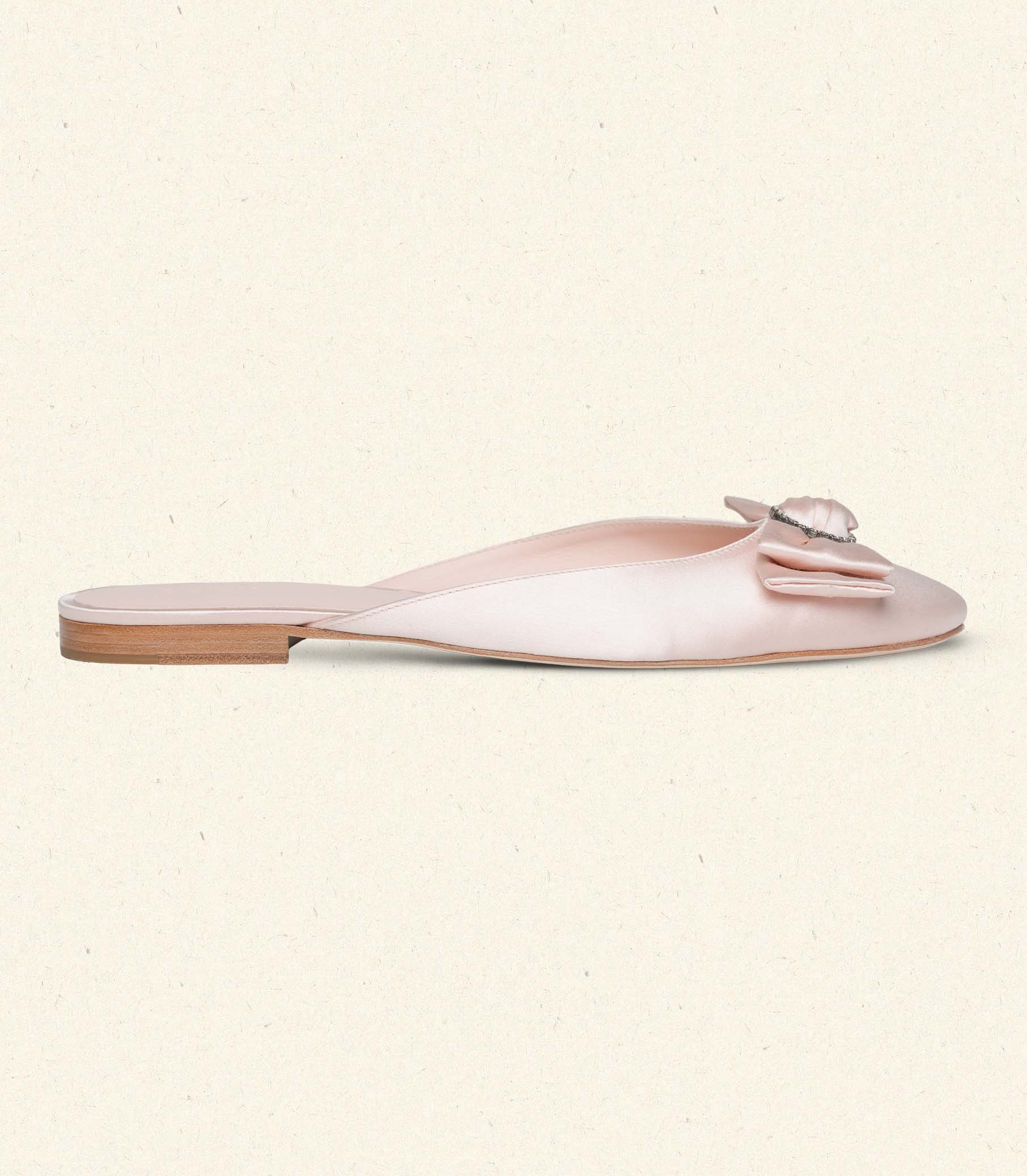 Crafted in satin with a soft leather lining, the Tilly Mule features a bow detail, rhinestone buckle, and rounded toe. It’ll dress up your denim or pair perfectly with a party dress.