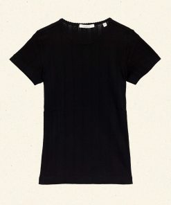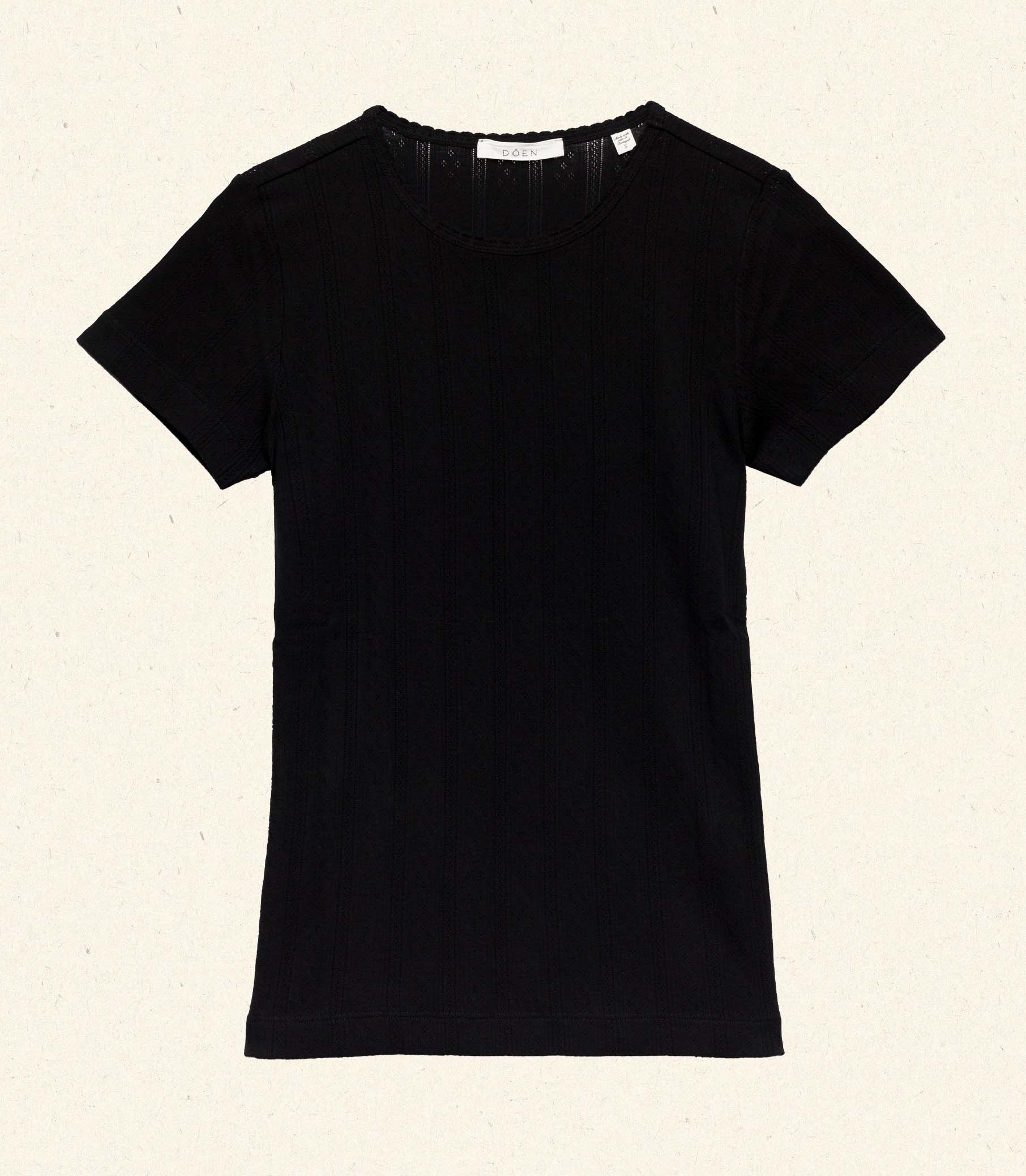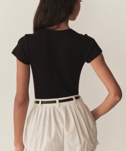 nCrafted from the softest organic cotton pointelle, the Vivi Tee is a ‘90s-inspired baby tee with a fitted silhouette, short cap sleeves, and delicate scalloping along the neck opening.